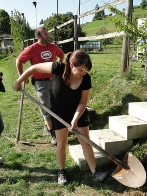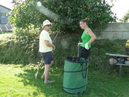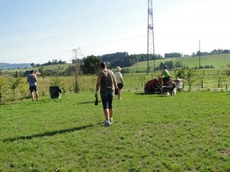 Am 2. Arbeitstag wurde bei 32 Grad speditiv gearbeitet. Neun Wakandler und zwei hilfsbereite Partner gaben ihr Bestes. Mit Trimmer, Rasenmäher, Hacke, Rechen und Putzlappen wurde dem Dreck auf dem Platz den Gar aus gemacht, begleitet vom Hundegebell und g‘schnäder der Zweibeiner.
